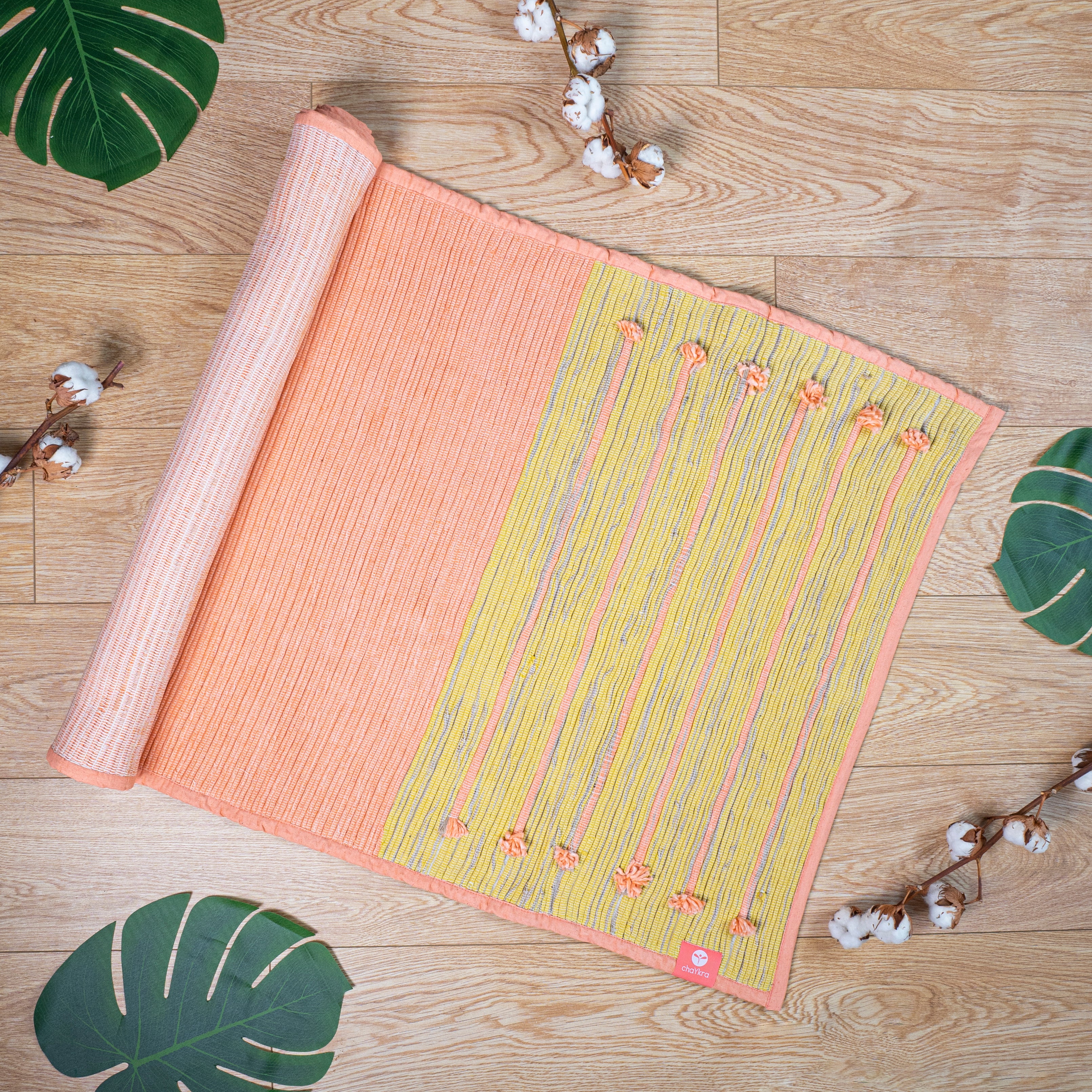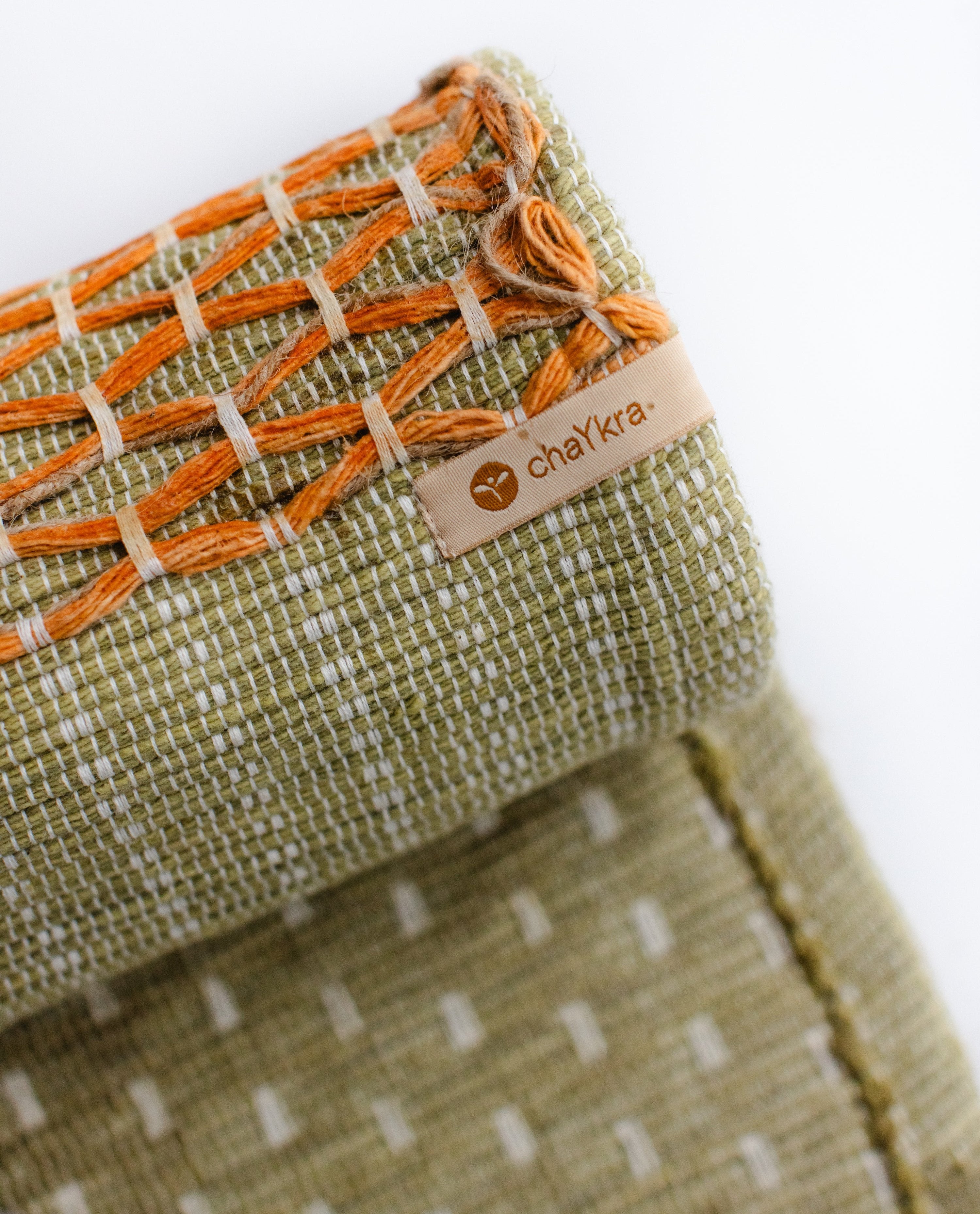 Try out a special yoga mat that's hand-woven, all natural & infused with healing Ayurvedic herbs