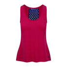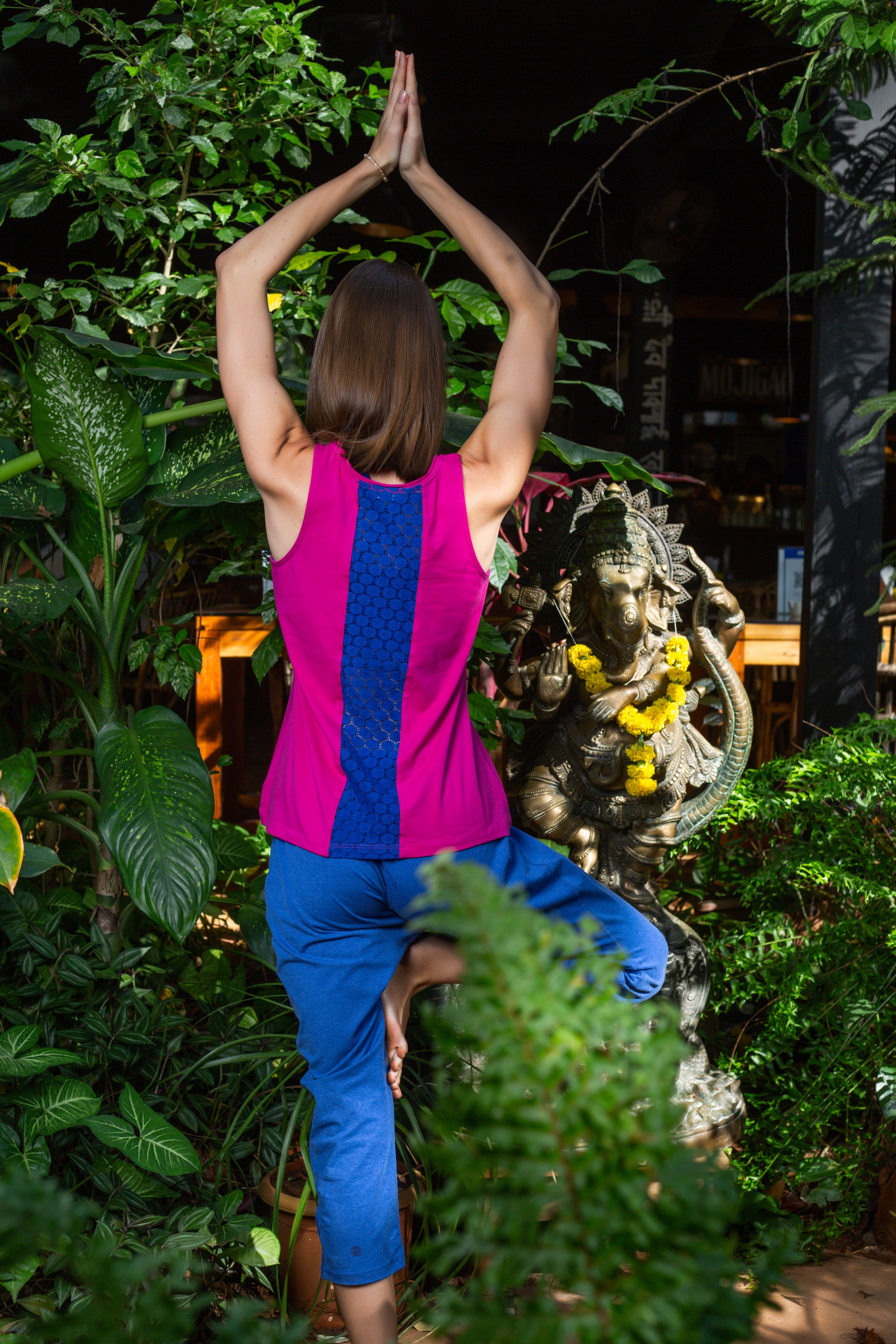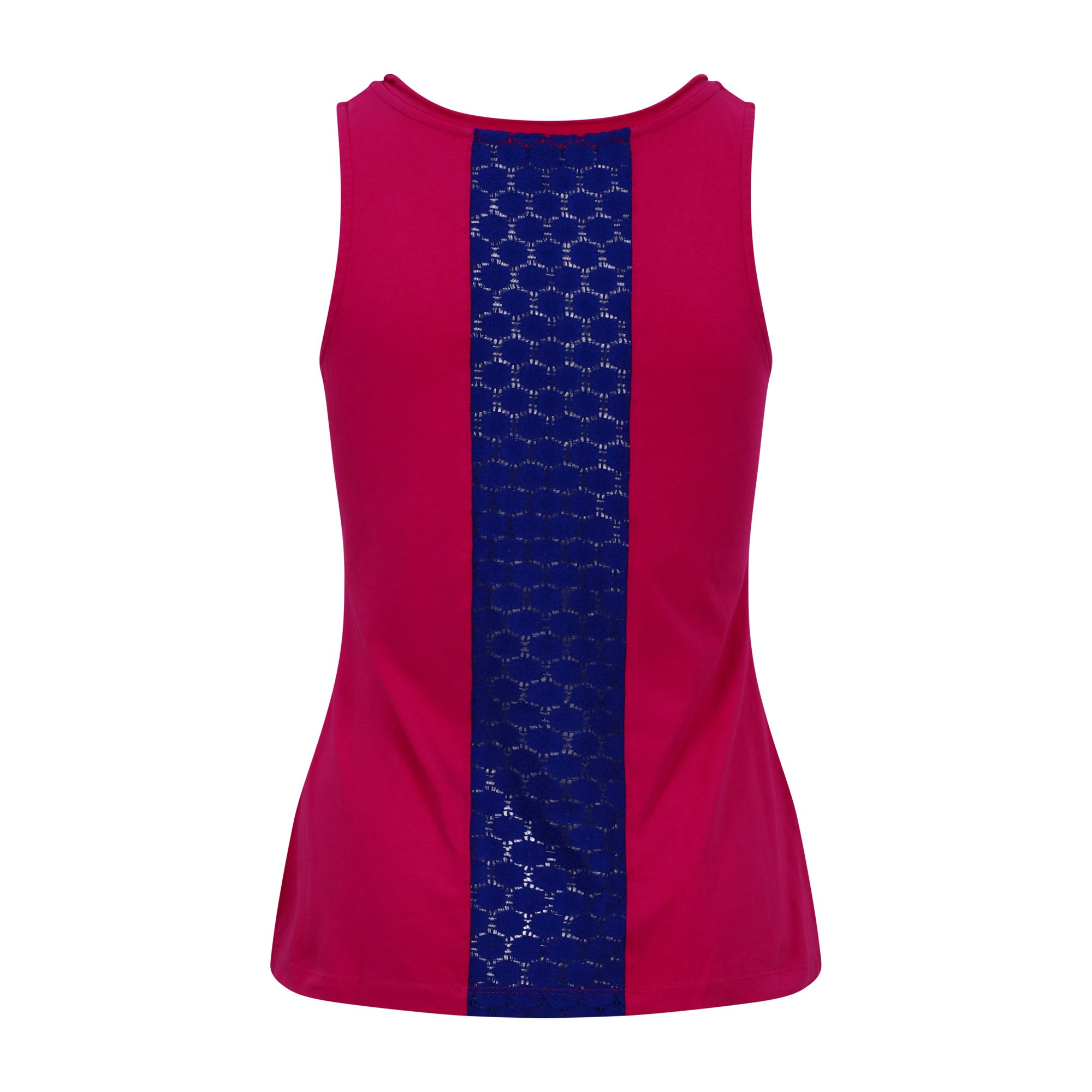 Enhance your yoga wardrobe with a head-turning style in this organic cotton tank with flower-designed lace back detail. The bright magenta base colour is enhanced with the contrasting navy lace panel. The vibrant colour, along with contrast detail, makes it perfect for a stylish class to social look. The organic cotton blend gives a premium quality softness, comfortable stretch and breathability.