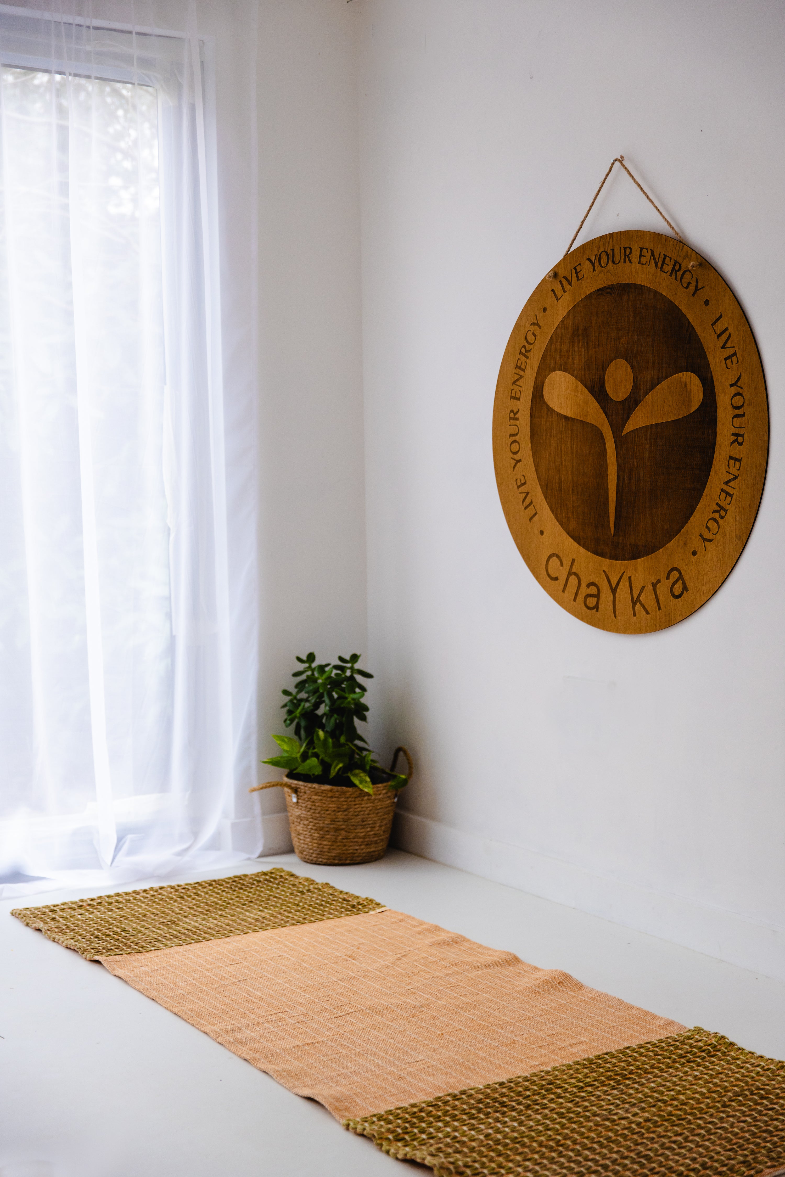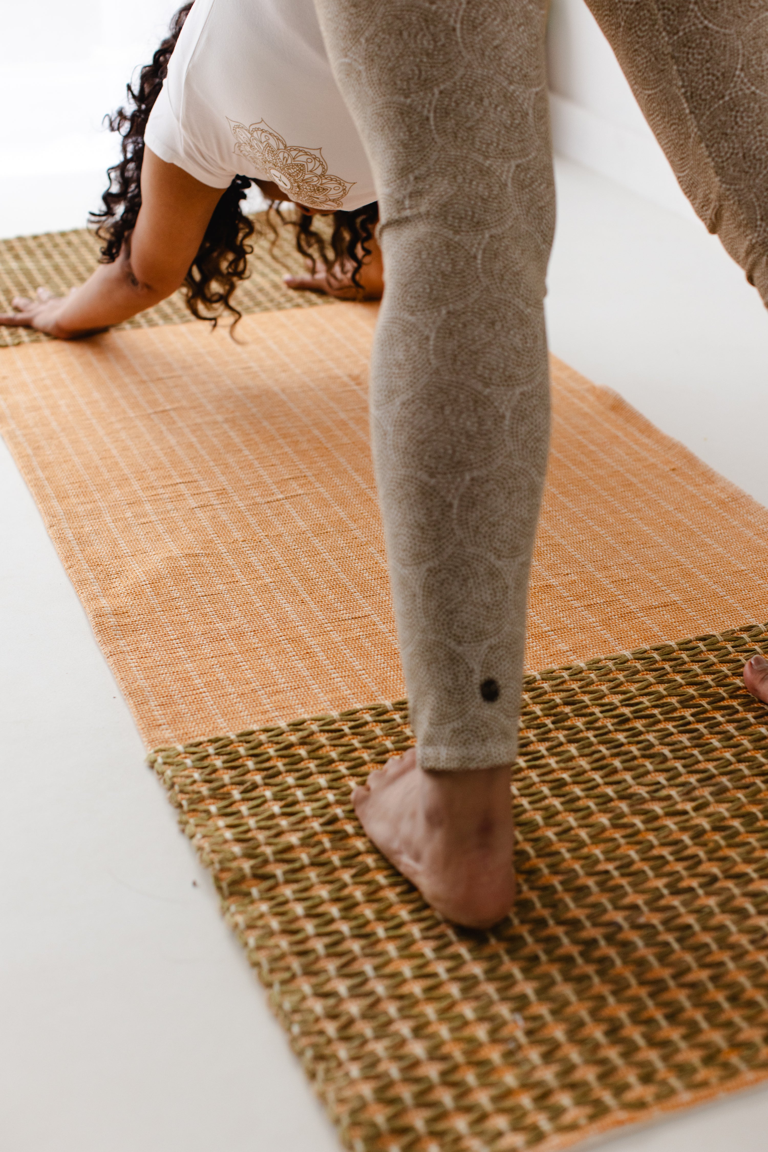 Expertly hand-crafted using organic cotton and herbal plant dyes, our Non-Slip Cotton Yoga Mat features a criss-cross design on both ends for enhanced grip.