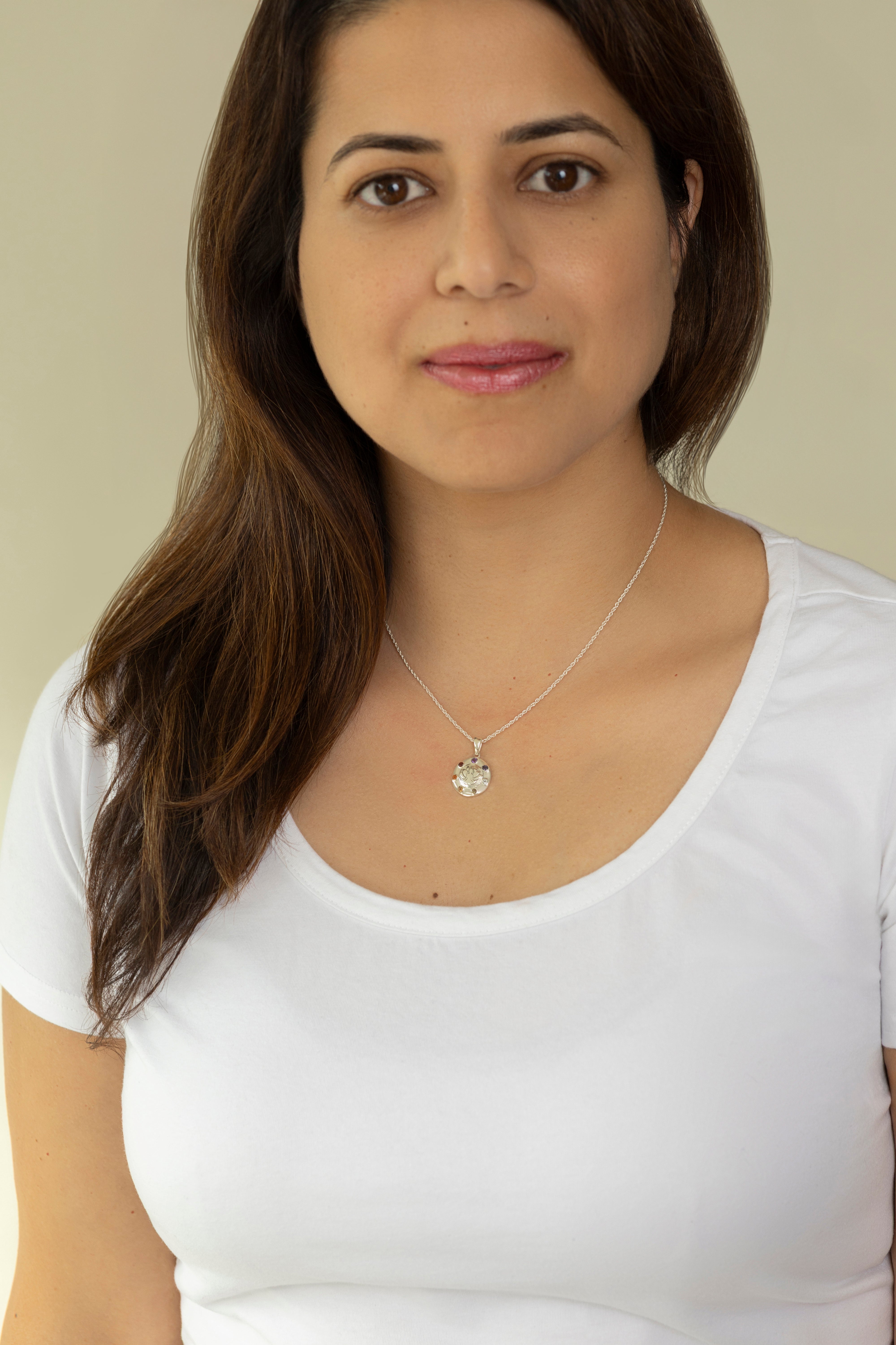 This pendant (925 sterling silver) has been designed in London and beautifully handcrafted in Jaipur, India by artisans. The engraving on this design shows a figure sitting in a meditative pose, with a lotus bloom emerging in the background. The meaning behind this design is that self-reflection and meditation can offer a powerful guide to help you flourish even in testing times, like the lotus that emerges as a beautiful flower amidst muddy waters.