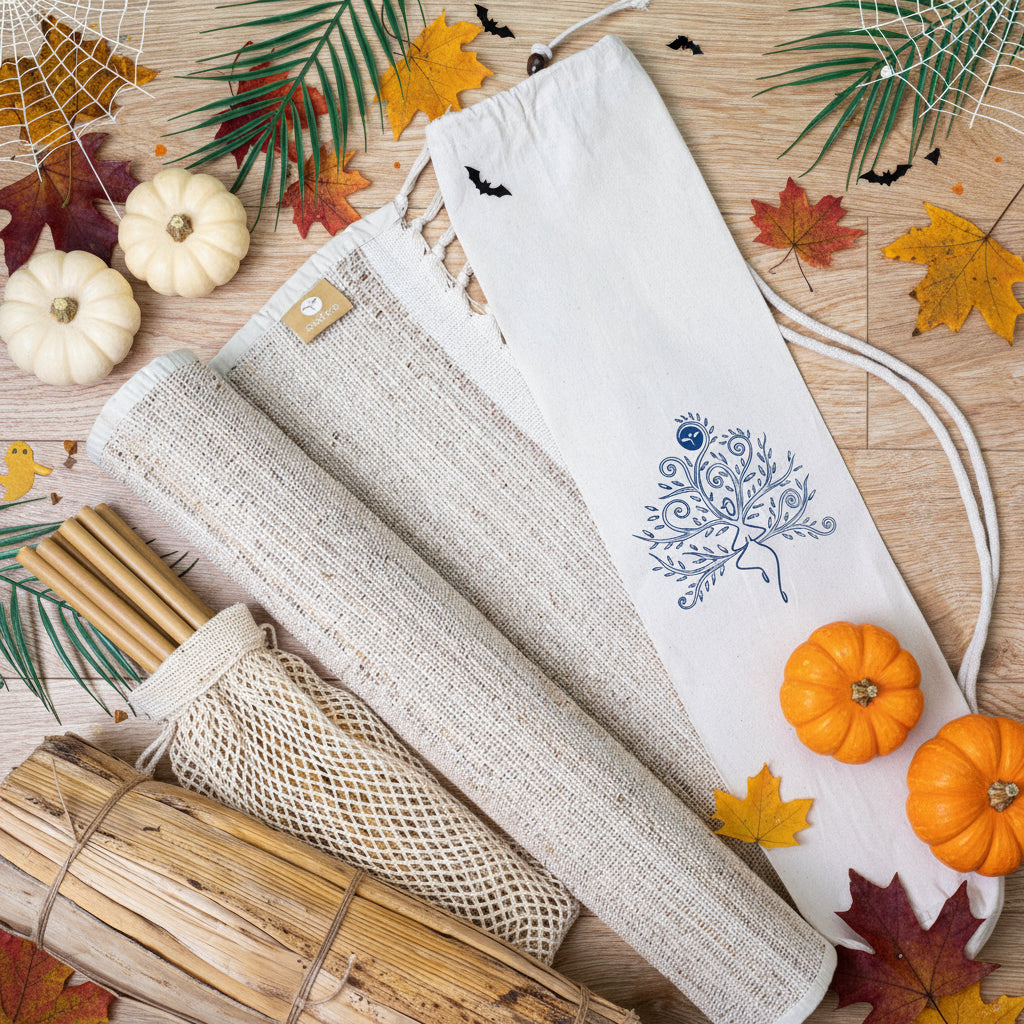 Each banana bark mat purchase comes in a cotton yoga bag printed with an abstract yogi tree of life design.