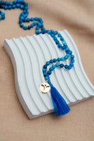 This beautiful blue coloured meditation mala is made up of 108 apatite gemstones. Each bead on the necklace can be counted or touched as a way to focus the mind, aiding meditation by bringing awareness to the present moment, and cultivating a deep sense of calm.