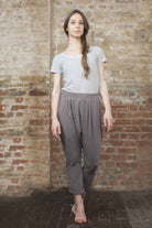 These grey melange harem pants are the ultimate indo-western fusion piece. The drop-crotch loose fit shape enhances comfort and breathability, while upping the cool factor. Their light-weight feel encourages ease of movement with all yoga practices, both restorative and aerobic. These pants have been made with an organic cotton blend, inspiring feel good comfort as you conquer your yoga practice.
