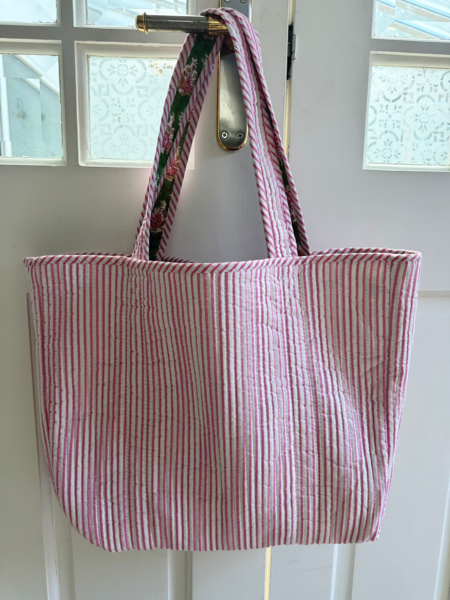 This is a beautiful tote bag, made from handblock printed quilted cotton.
