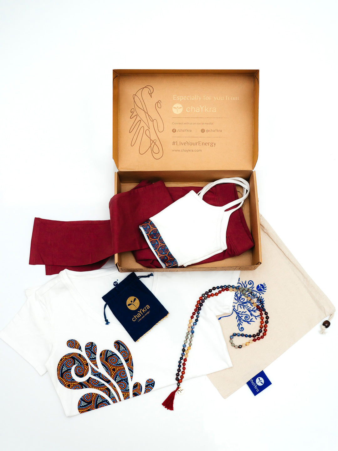 Perfect for Gifting! This set comes beautifully wrapped in premium branded tissue paper, nestled in a chaYkra gift box, and includes a special chaYkra cotton pouch featuring an abstract yogi design.