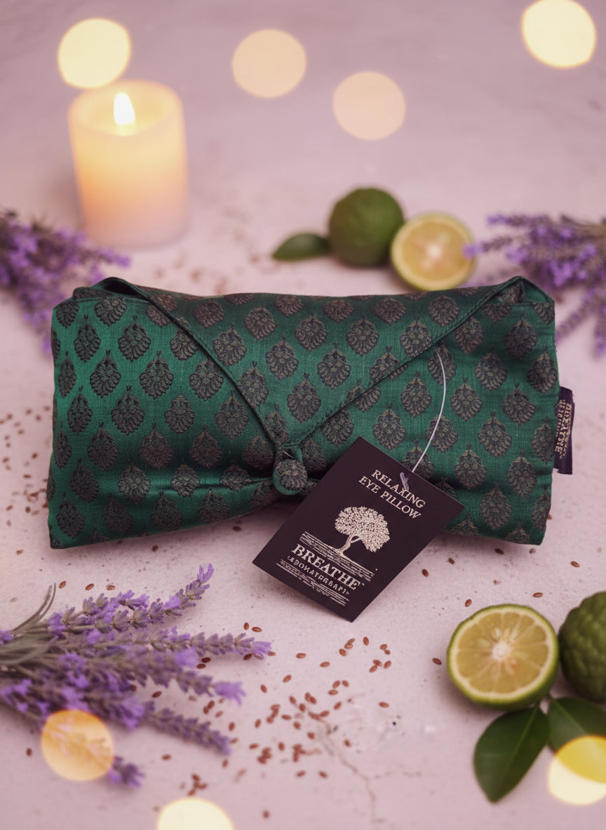Pure Silk Relaxing Eye Pillow: Green Pattern
