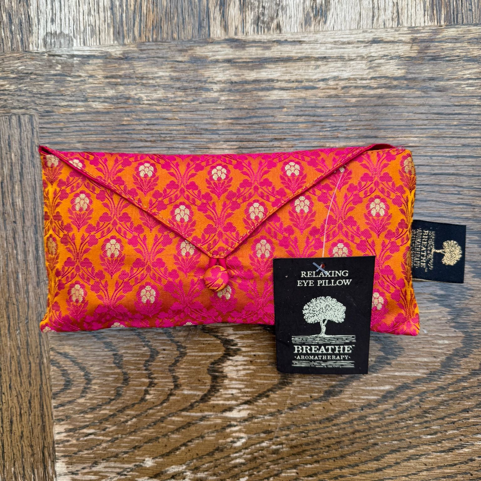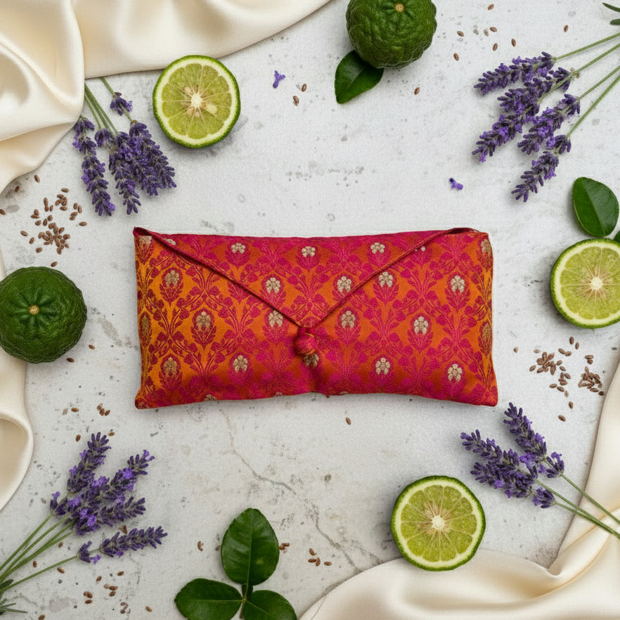 Pure Silk Relaxing Eye Pillow: Orange-Red Pattern