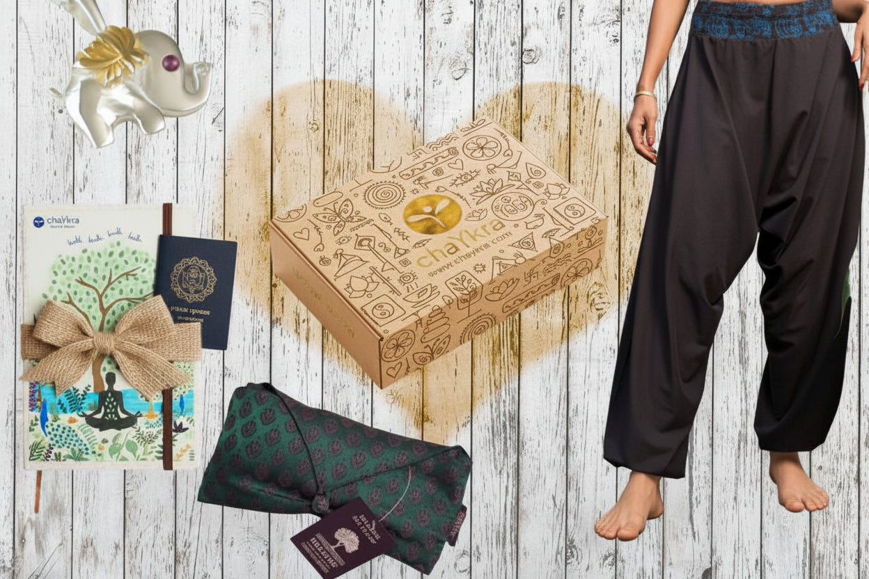 Slip into your soft harems, settle into a comfortable space, place the silk eye pillow over your eyes, and let the day melt away. Journal your reflections, set intentions, and wear your Lotus Elephant necklace as a symbol of your inner strength and serenity.