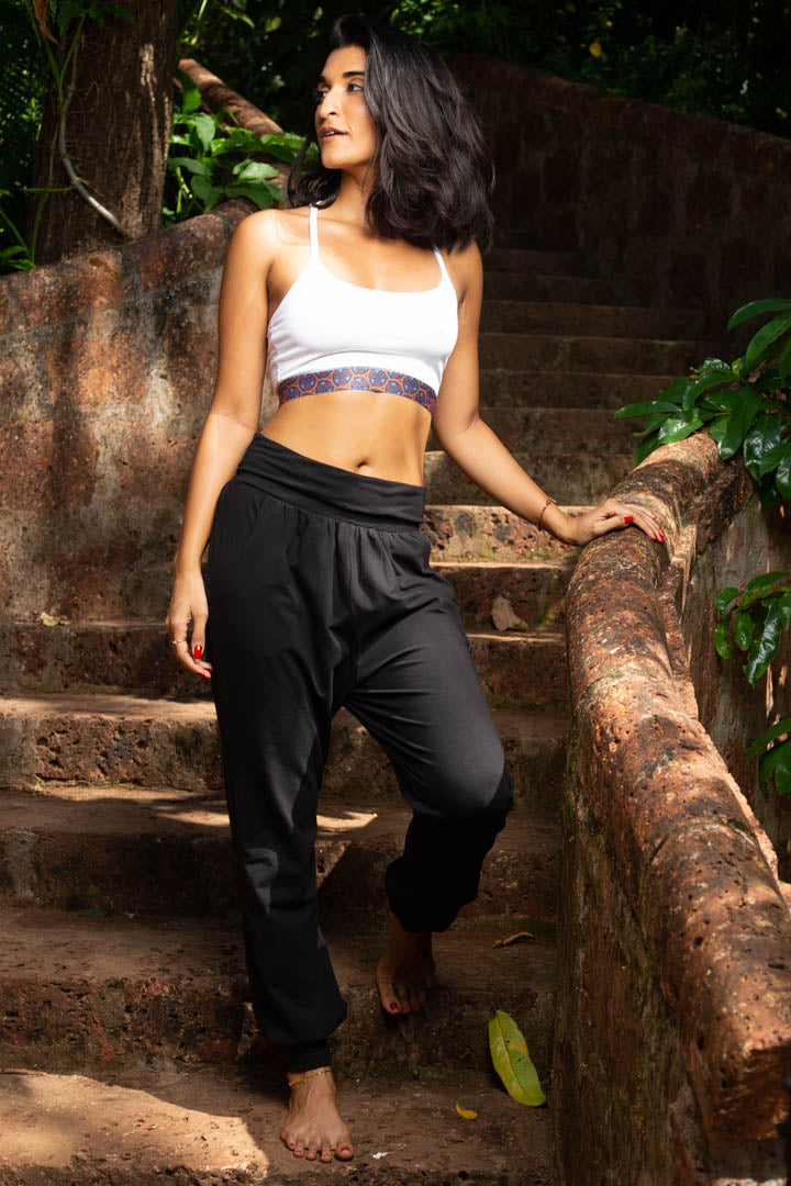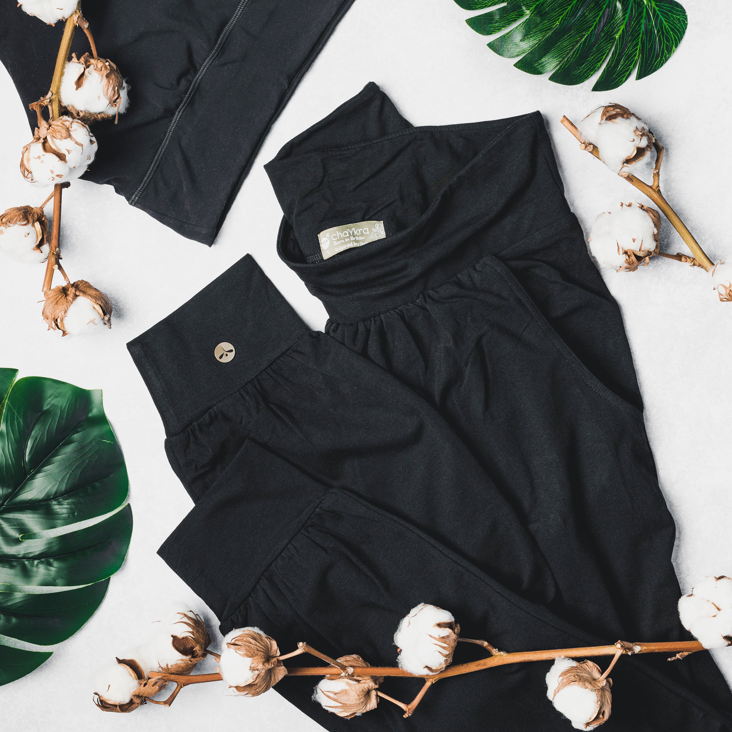 These staple black organic cotton trousers are perfect for yoga, relaxation, or travel. Read More