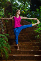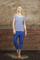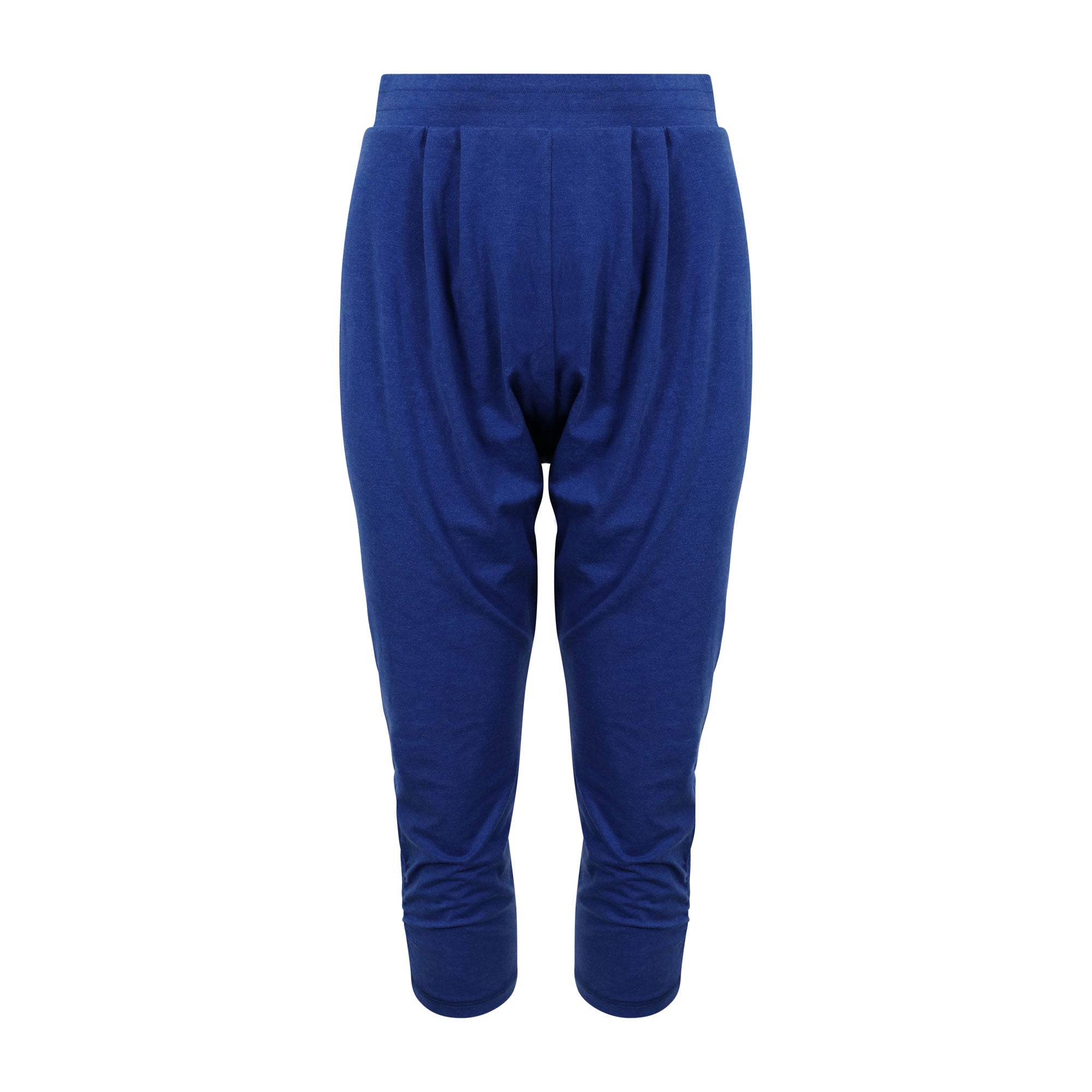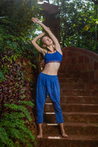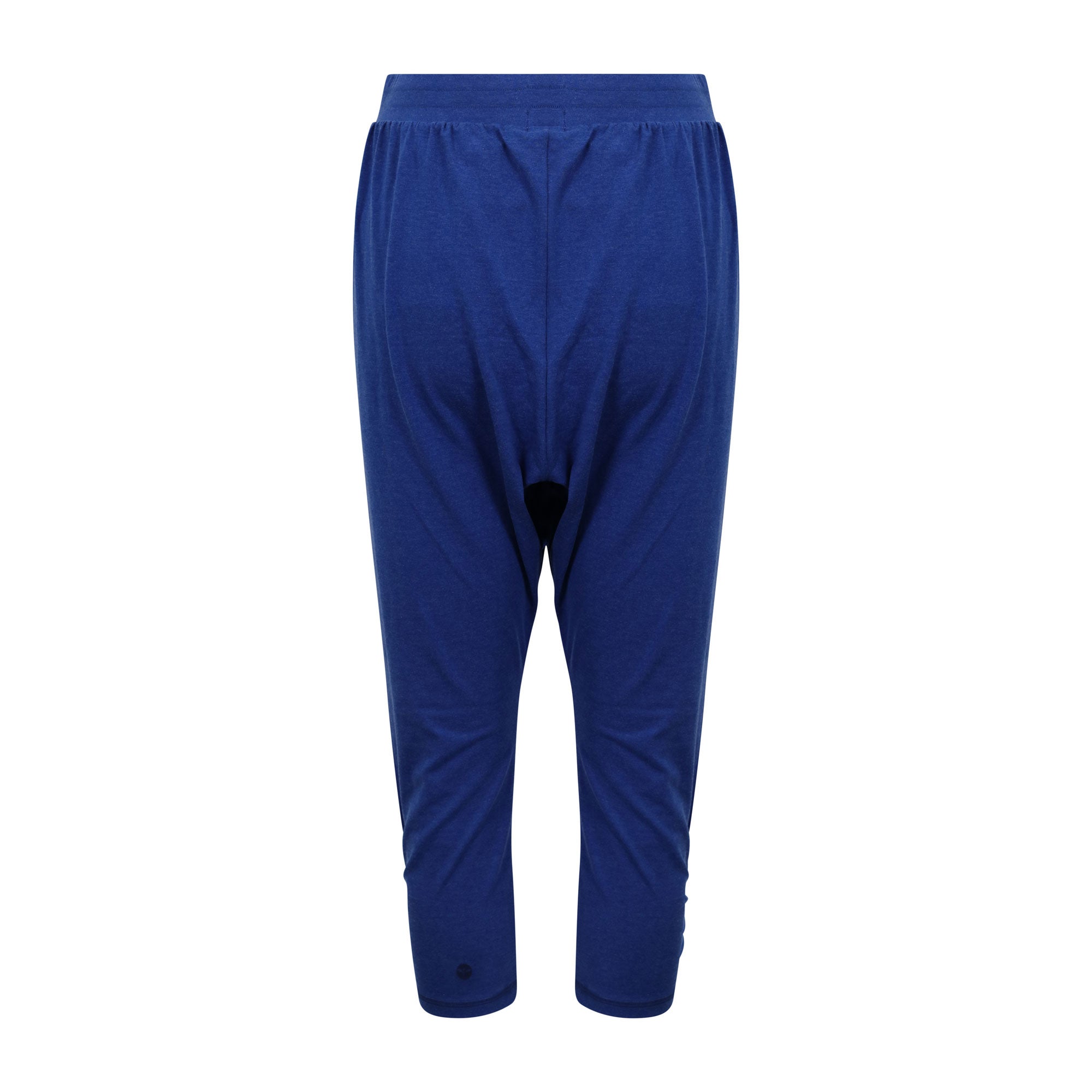 These royal blue melange harem pants are the ultimate indo-western fusion piece. The drop-crotch loose fit shape enhances comfort and breathability, while upping the cool factor. Their light-weight feel encourages ease of movement with all yoga practices, both restorative and aerobic. These pants have been made with an organic cotton blend, inspiring feel good comfort as you conquer your yoga practice. A great loungewear alternative as well!