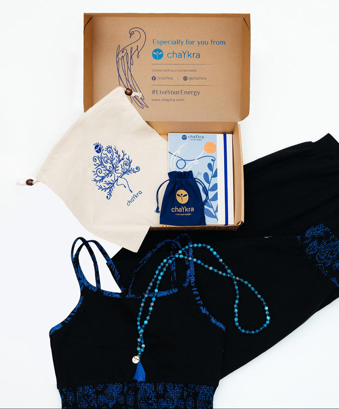 GREAT FOR GIFTING This set is beautifully wrapped in branded tissue paper and a chaYkra branded gift box and includes a chaYkra abstract yogi designed cotton pouch.