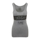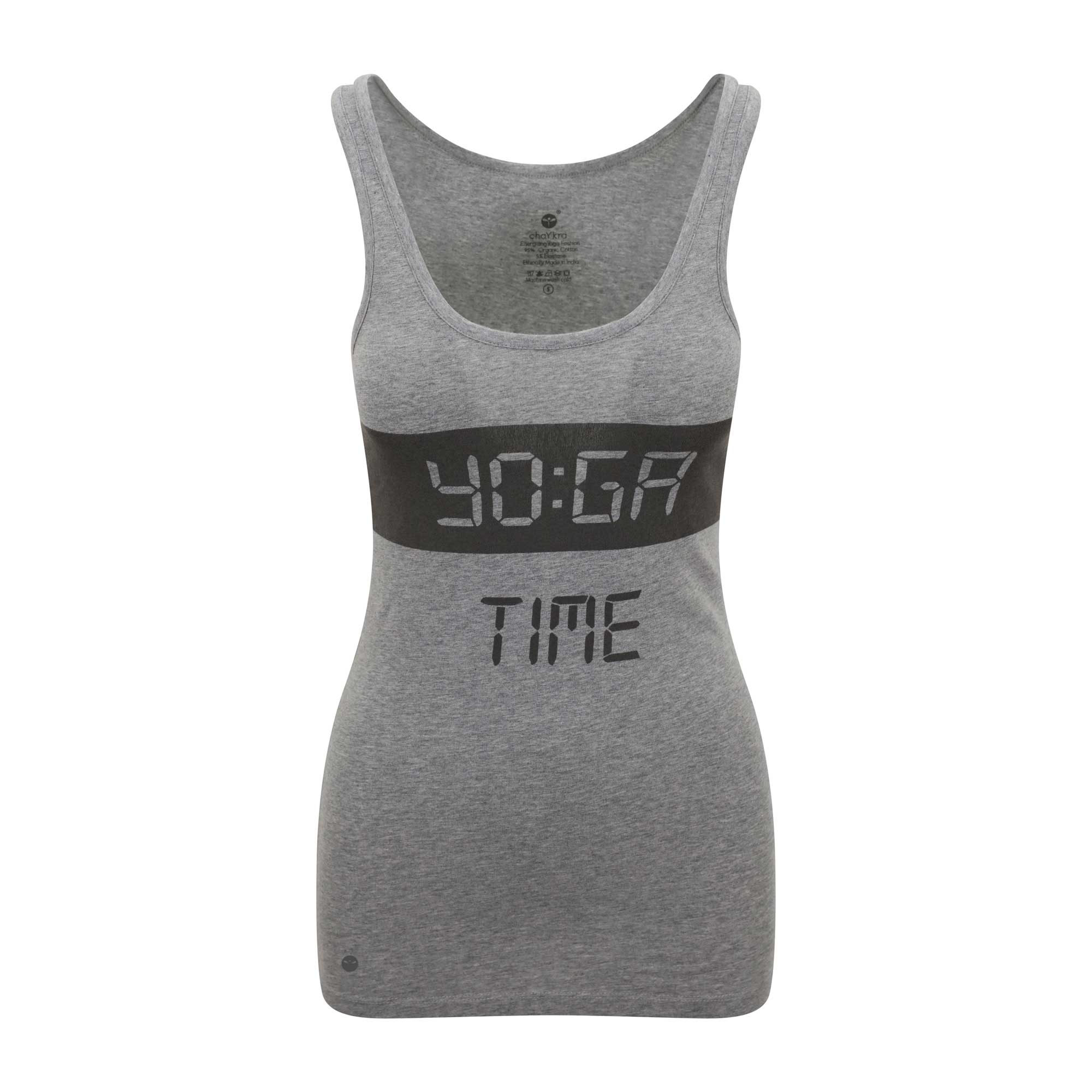 Press pause on hectic days and choose some 'me' time on the mat. The digital alarm clock inspired design of this tank is sure to turn heads. The base material of grey melange organic cotton offers soft comfort and the slight stretch gives a good figure hugging fit. Embrace an effortless, quirky style!