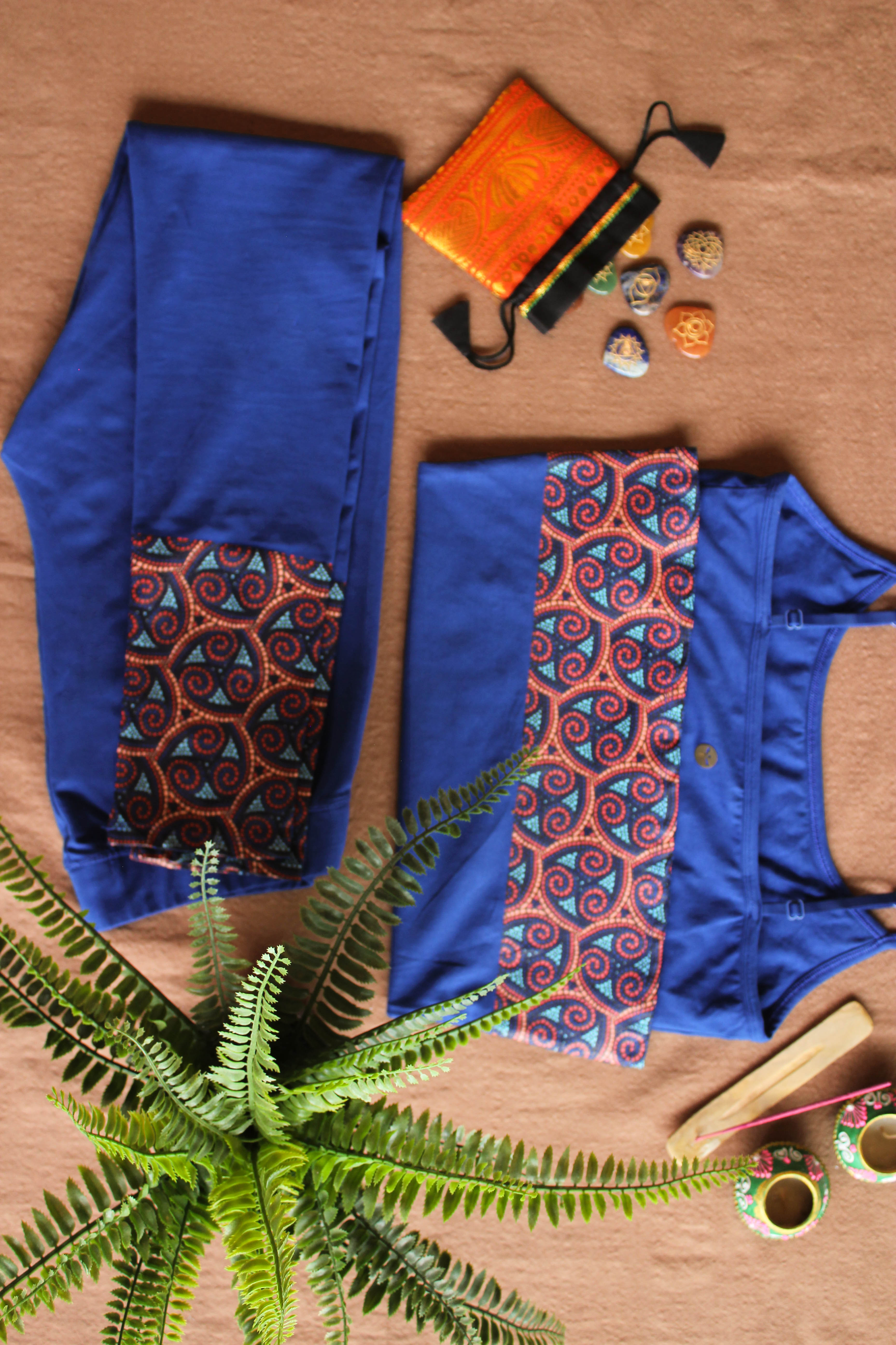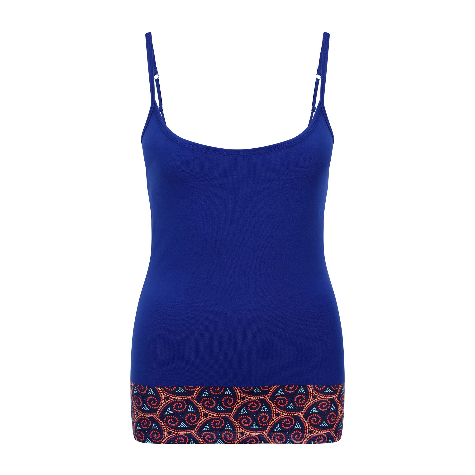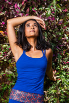 This cami yoga top provides practicality and style in equal measure. It contrasts a navy block colour with chaYkra's signature vibrant swirl print as a bottom design band, symbolising the chakra energy wheels. The cami features a convenient built in bra and moderate neckline. The organic cotton texture delivers optimal comfort, while the added stretch gives a figure hugging look. With easy-wearability and a stylish yet simple design, this will be a favourite item in your workout wardrobe!