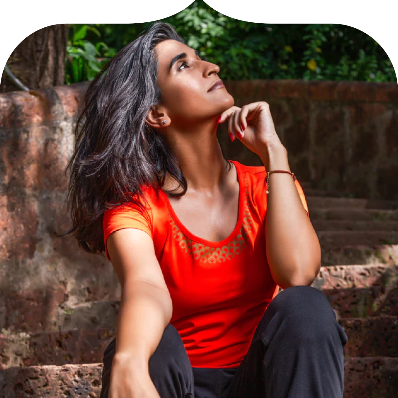 “Om loves the Sun Salutation Yoga Tee. You will definitely impress in this stunning yoga top. The bronze / golden necklace detail enhances the vibrancy of the sun inspired burnt orange shade. The organic cotton stretch material offers unparalleled comfort and optimal breathability.”